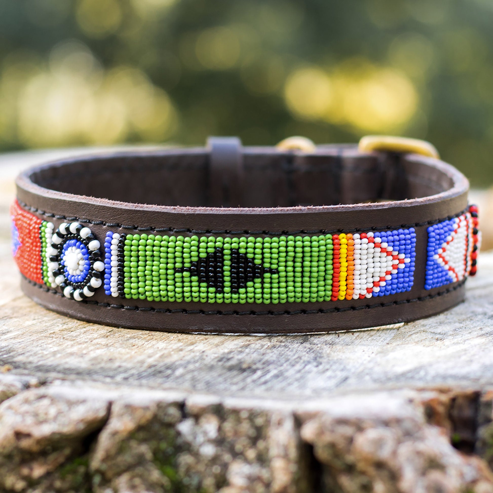 Collier pour chien en cuir noir avec perles et boucle en laiton. A l'intérieur, une doublure douce est présente. Les colliers sont joliment perlés à la main avec de la perle de rocaille. Ils sont ensuite cousus à la main pour les rendre résistants et durables.
