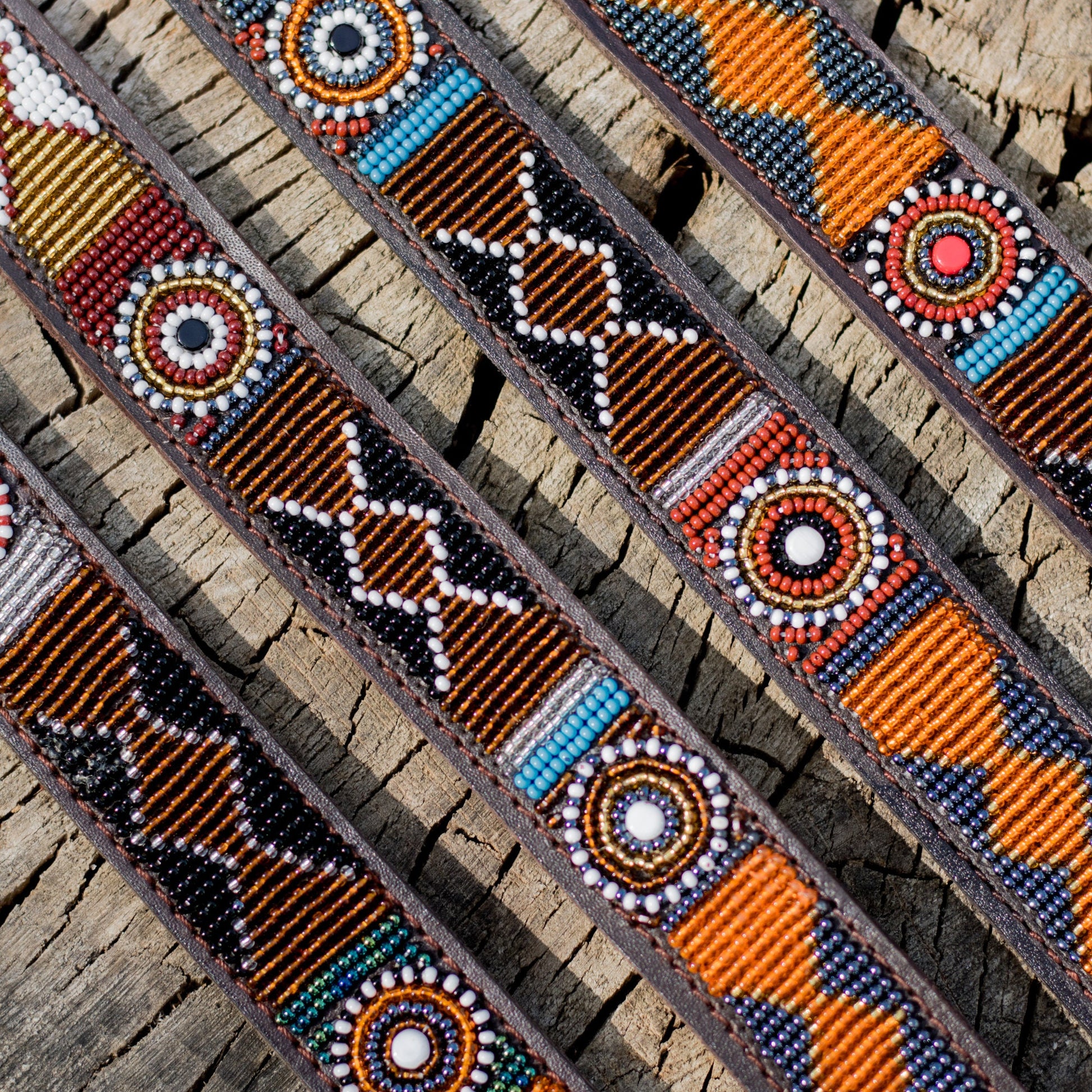 Collier pour chien en cuir marron avec perles et boucle en laiton. A l'intérieur, une doublure douce est présente. Les colliers sont joliment perlés à la main avec de la perle de rocaille. Ils sont ensuite cousus à la main pour les rendre résistants et durables.