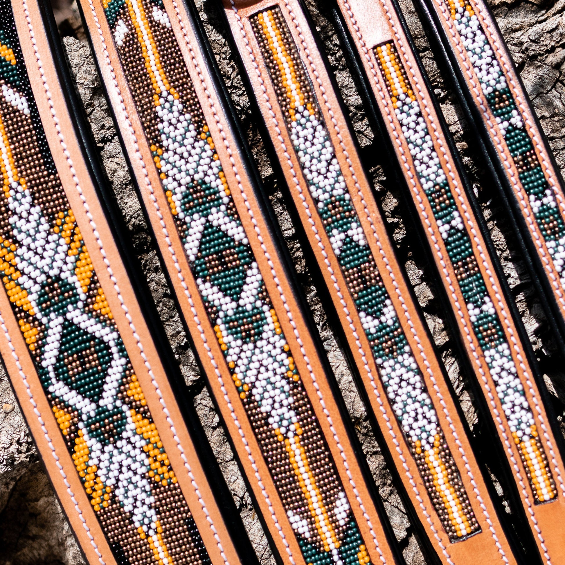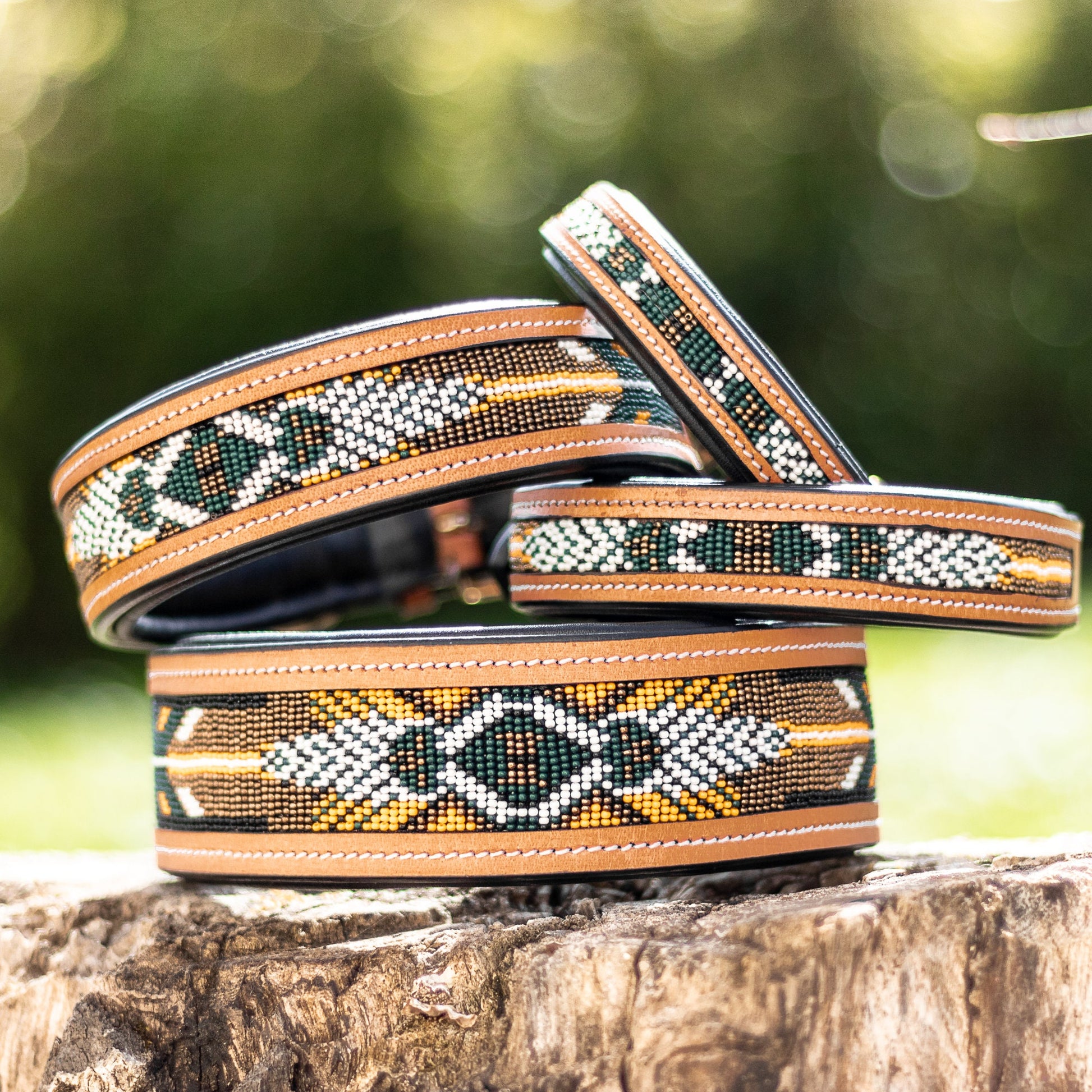 Collier pour chien luxe doublé en cuir noir à l'intérieur, marron à l'extérieur, avec perles. A l'intérieur, une doublure molletonné douce est présente. Les colliers sont joliment perlés à la main avec de la perle de rocaille. Ils sont ensuite cousus à la main pour les rendre résistants et durables.