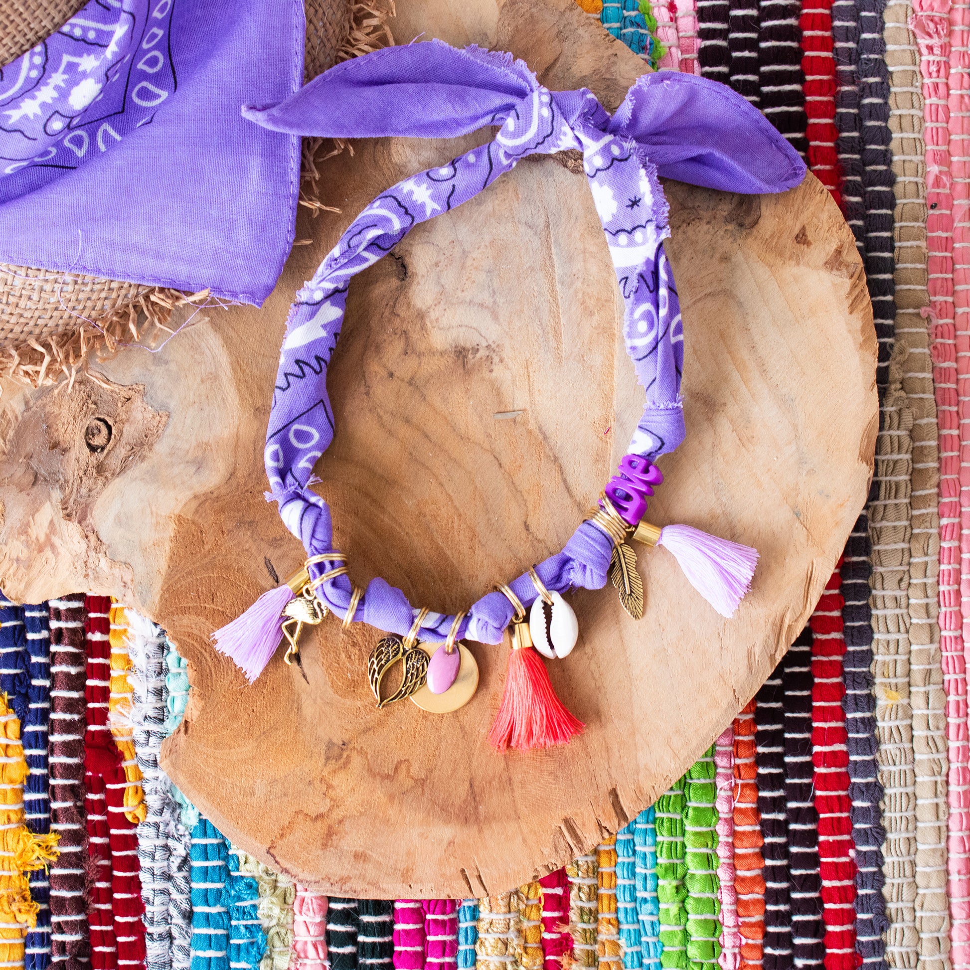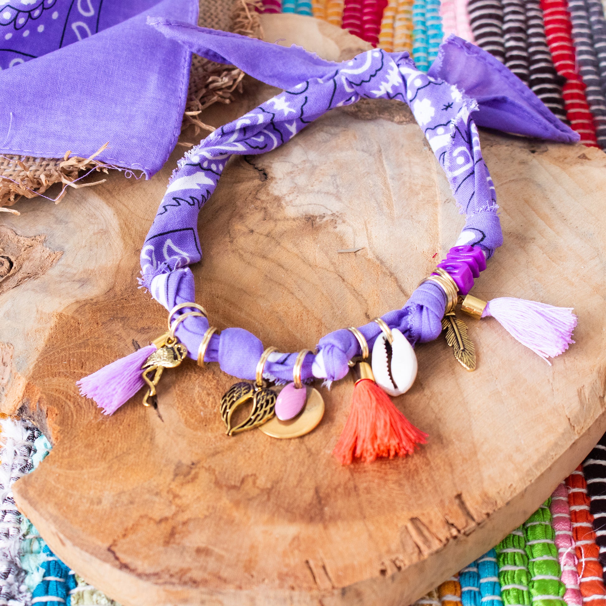 Apportez une touche unique et élégante avec ce bandana bijoux porte-médaille. Inspiré de l’imprimé traditionnel du bandana en coton, il est revisité en version chic avec un style bohème tendance.